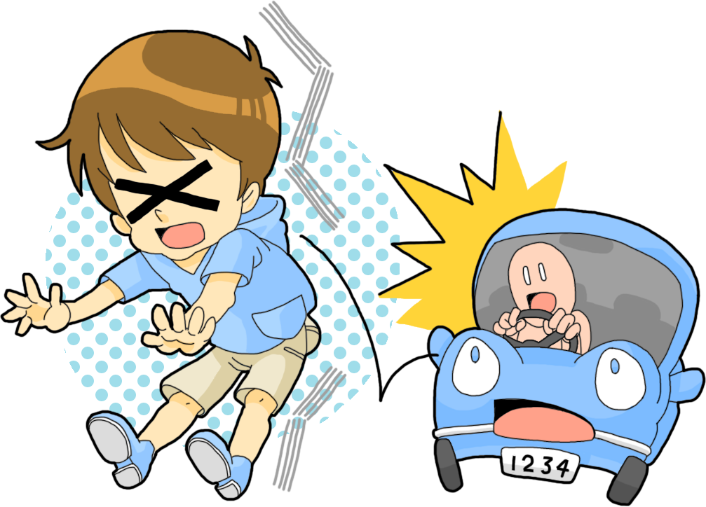 交通事故に遭い自転車や歩行者は交通事故の衝撃で生身のまま地面に放り出されます。