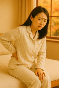 - 朝の冷えで背中が痛くなる