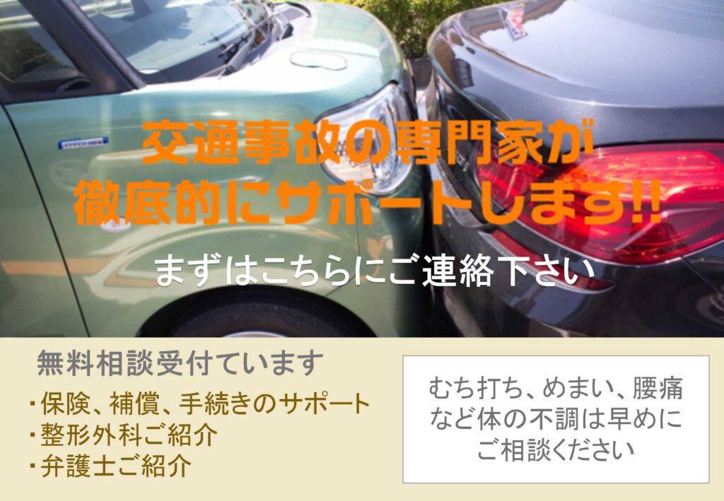 交通事故後の無料相談ページ も参考にしてみてください。