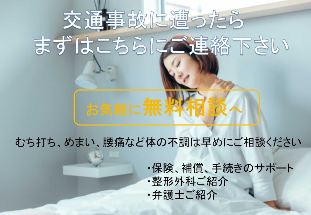 交通事故後の対応の不安と体調の不安の両方を一つの窓口で対応しております。