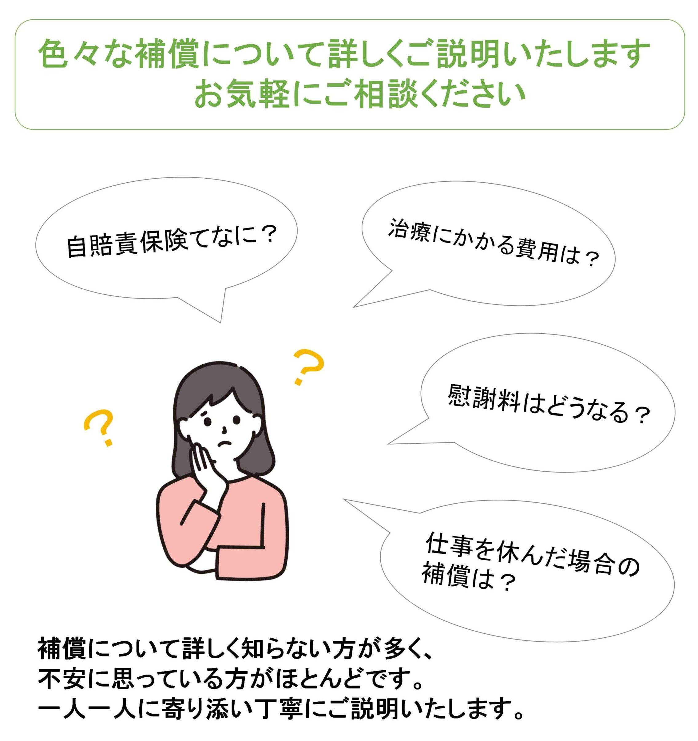 辛い事故後の不安を安心に変えられるように一緒に頑張りましょう!